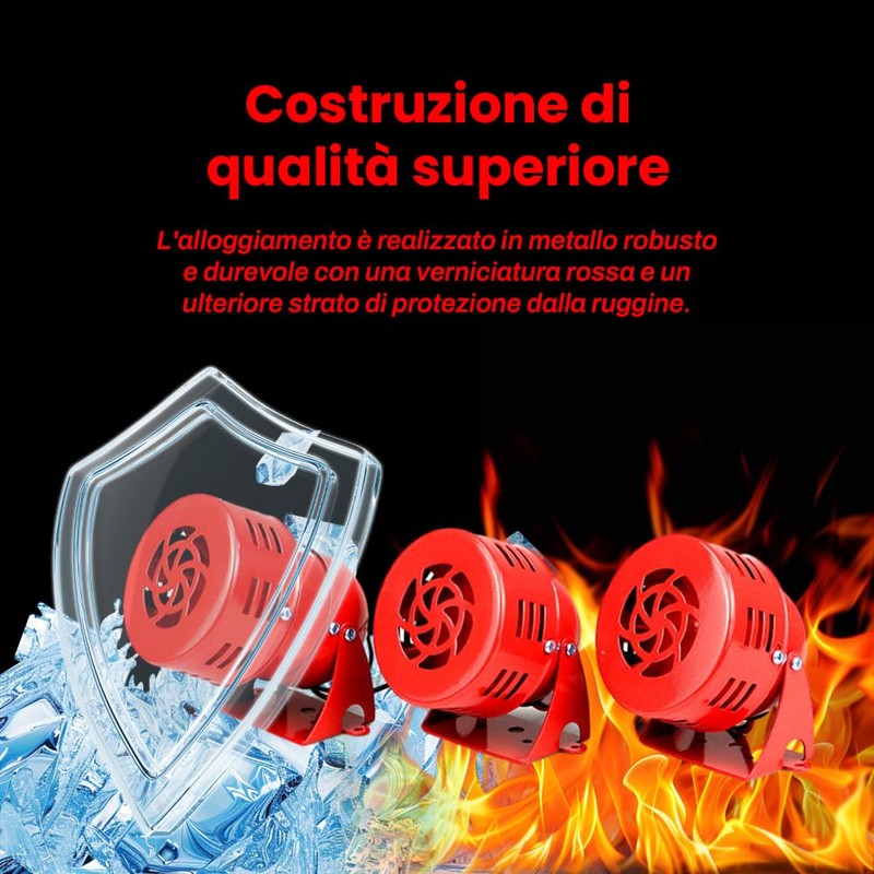 - HEAVY DUTY METAL CONSTRUCTION The motor siren is made of durable metal with red anti-rust coating and internal copper wire. Equipped with a highly sensitive trigger mechanism, the motor buzzer provides quick alerts when you need them most