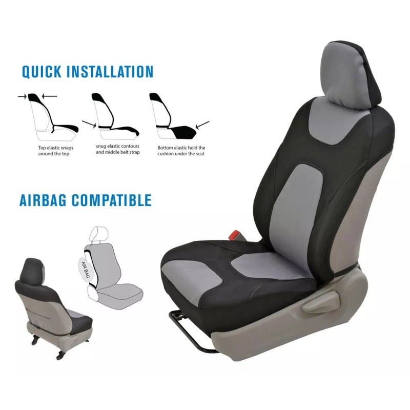 These thick and durable seat covers are 100% waterproof to protect you from liquids, foods, and any spills and accidents. The covers only protect what needs to be protected. Side-less coverage provides easy access for armrests, controls, and side air bags. You will have your seats covered where you need it, and not covered where you don't. Soft polyester cloth, waterproof neoprene, and anit-slip backing create the comfortable and practical seat cover.