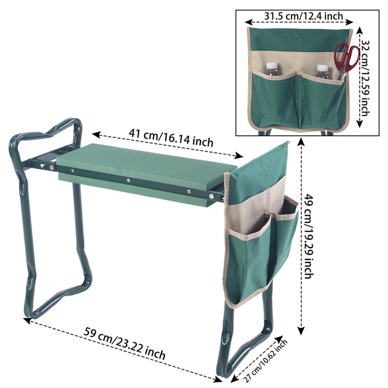 motor_parts2024 Foldable Garden Kneeler Bench Stool Soft Cushion Seat Pad Kneeling w/ Tool Pouch