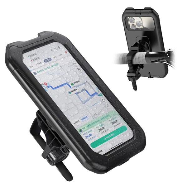 - 【 Touch Screen & 360° Rotation 】 This waterproof bike phone mount with HD high sensitive film window that supports Face ID,fingerprint Touch ID, which allows a clear view of the screen and gives you full access the phone screen without removing the smartphone.The waterproof phone holder for motorbike supports 360°rotation,you can adjust the angle of the bike phone holder freely.