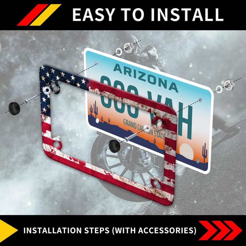 Motorcycle American Flag Blood Spatter License Plate Frame Stainless Steel Material Funny Motorbike License Plate Holder Motorcycle Accessories 7" X 4" Inch