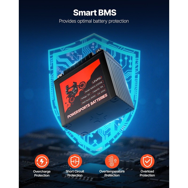 - Secure and Reliable: Equipped with an intelligent BMS that provides overcharge, short-circuit, and temperature protection, this sealed powersports battery ensures no acid leaks. It's more secure and more reliable than traditional lead-acid batteries