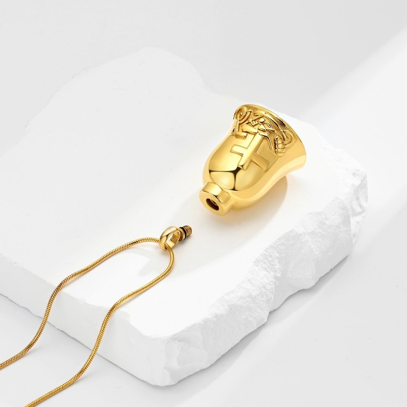 Motorcycle Bell Urn Necklace for Ashes Memorial Pendant Cross Cremation Jewelry Ash Holder Keepsake Jewellery Gift for Loved Ones Motorcycle Bells Keychain (Gold)