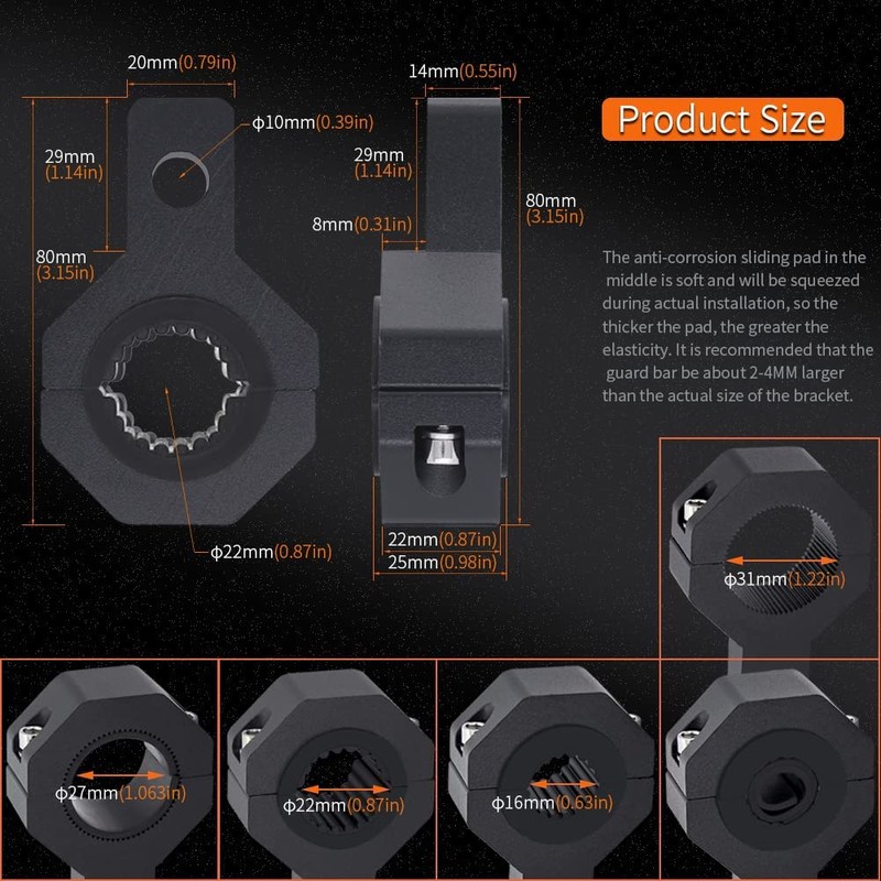 size: fit for bumper 19mm/0.75"-25mm/1"-32mm/1.25"