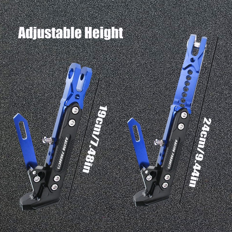 Motorcycle CNC Kickstand Adjust Tripod Holder Universal Aluminum Motor Scooter Modified Foot Side Stand Motorcycle Accessories (Blue)