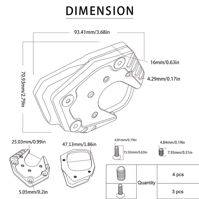 - 3. Safety: the side stand magnifier can increase the contact surface of the stand and the floor, increase friction, so that the motorcycle is parked more stable.
