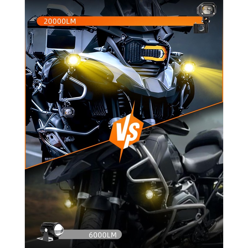 - ๐๐ง๐ฆ๐๐ญ๐๐ก๐๐ ๐๐ซ๐ข๐ ๐ก๐ญ๐ง๐๐ฌ๐ฌ: Packing a punch with 60W of power and an impressive 20,000LM output, our Motorcycle Fog Lights outshine the competition. The combination of white and amber lights in various intensities ensures maximum visibility in any situation, from thick fog to clear - night rides. Whether you're navigating a winding mountain road or a busy urban street, these lights will light up your path like never before.