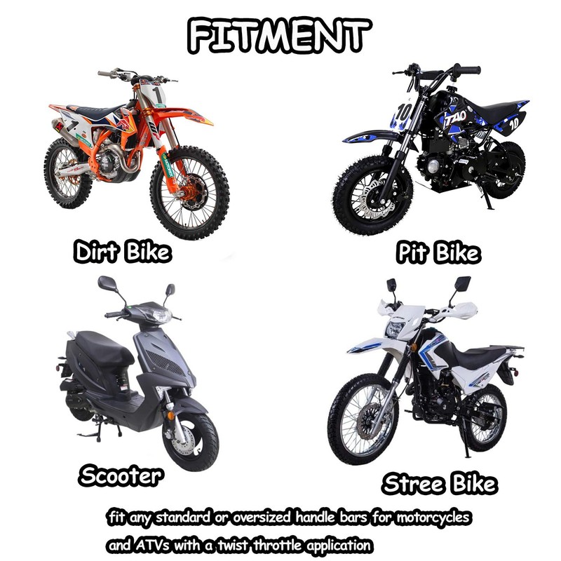 Our dirtbike grip fit any standard or oversized handle bars for motorcycles and ATVs with a twist throttle application.