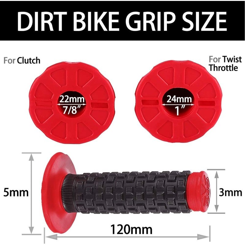 - 🏍FITMENT--Inner Diameter(L/R)-22mm/24mm.This motocross grips will universal fit 7/8" bars or oversize bars that taper to 7/8" at bar ends,fit for most dirt bikes,pit bike,stree bike,ATV