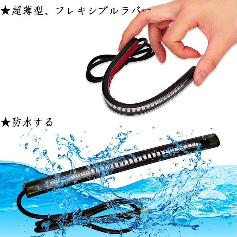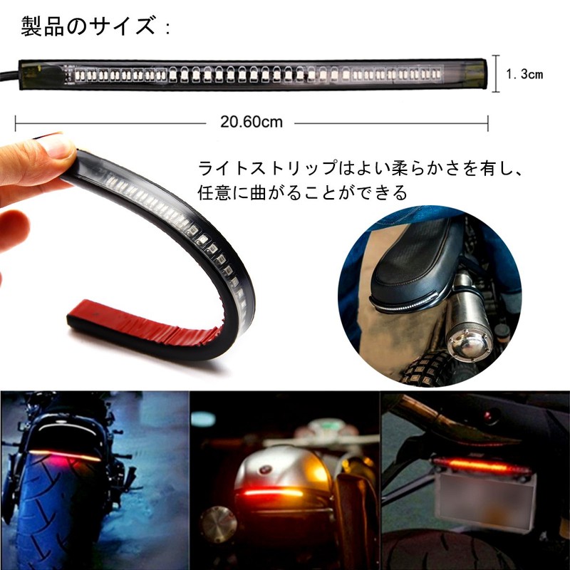 - Design: 2 colors LED turn signal tape, when the motorcycle is running, the light will be pale red when the brakes are on, the lamp will turn bright red when the bike is rotated, and the light will turn yellow