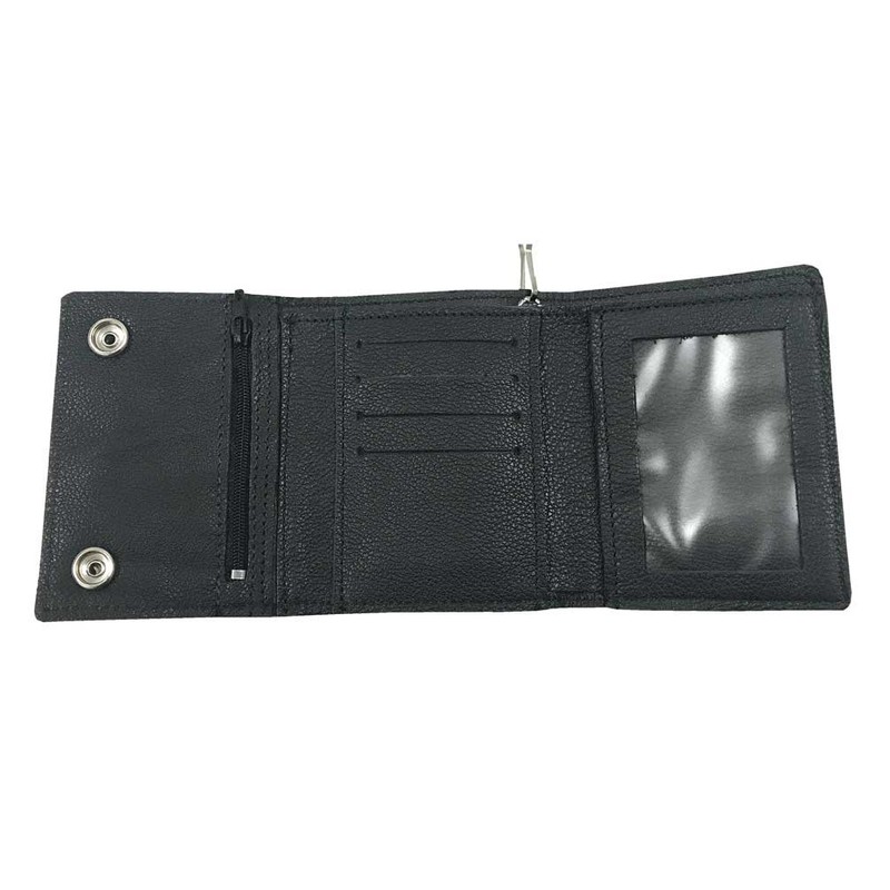 Motorcycle Men's Tri-Fold Wallet Genuine Leather Biker Chain, Green Camo OCF315