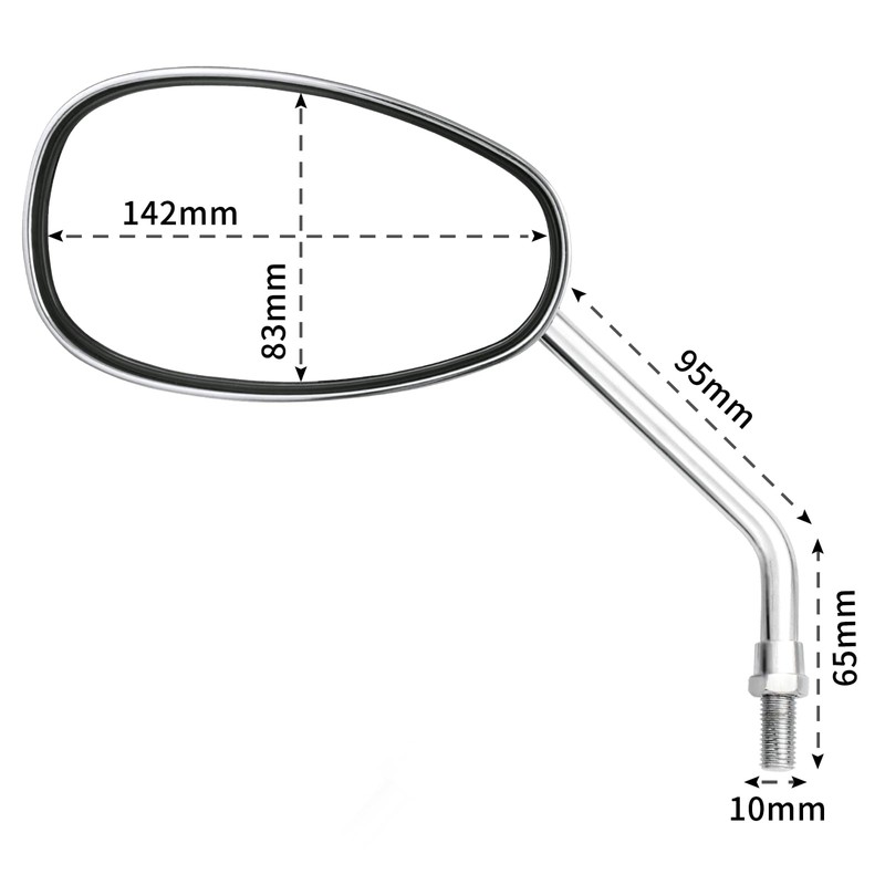 - 10 mm Chrome Motorcycle Mirrors offer Wide Viewing Range and Image Stabilization
