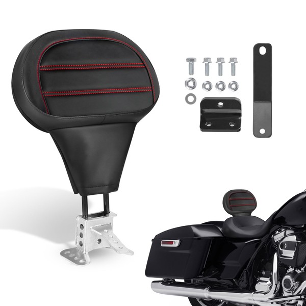 Motorcycle Quick Release Plug-in Driver Backrest Fit For Harley Touring Road King Glide 2009-2026 Adjustable Detachable Rider Pad with Mounting Kit (Red String)
