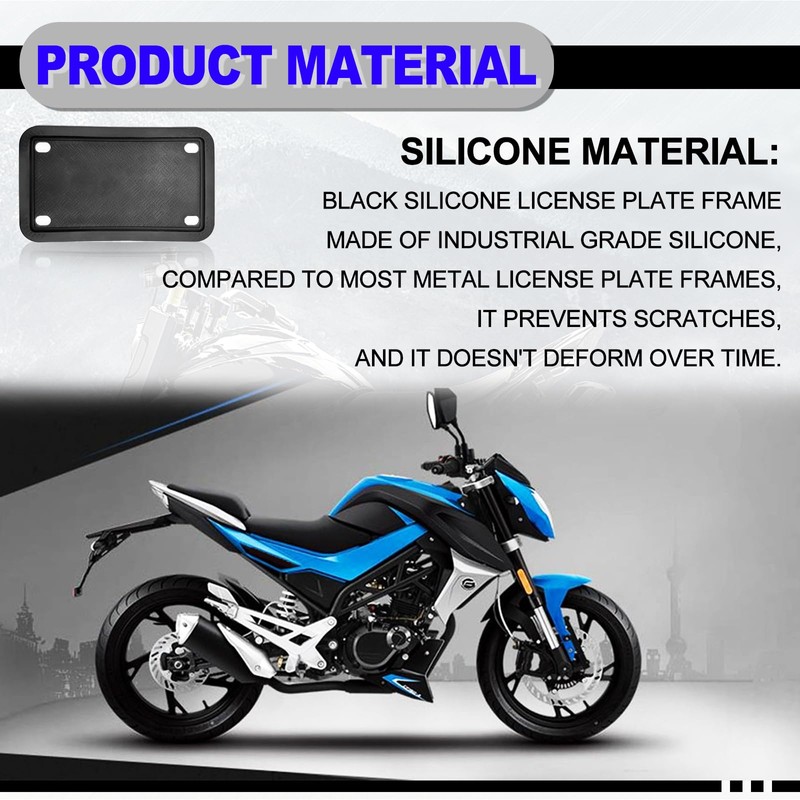 Motorcycle Silicone License Plate Frames, License Plate Cover 4x7 in, Rust Proof, Rattle Proof, Weather Proof License Plate Holder for Men Women