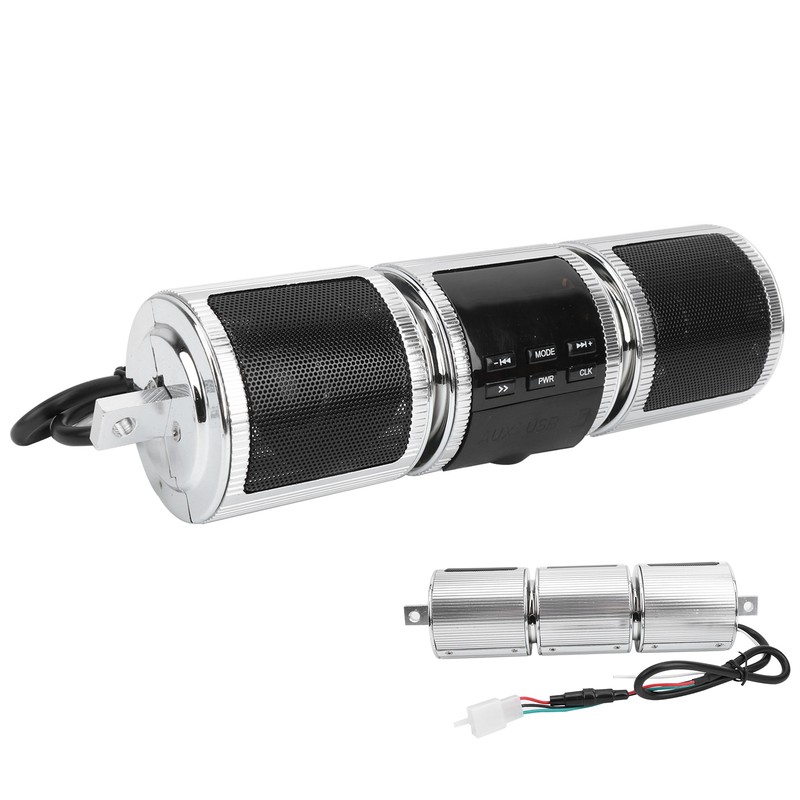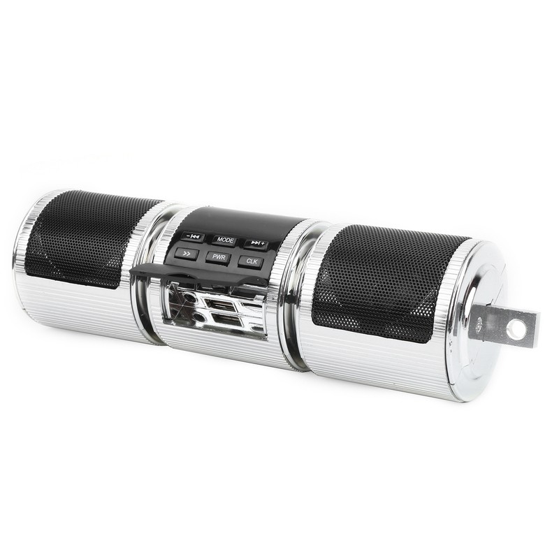 Motorcycle Stereo Speaker Bluetooth MP3 Audio Handlebar Player Waterproof High Sound QualitySilver
