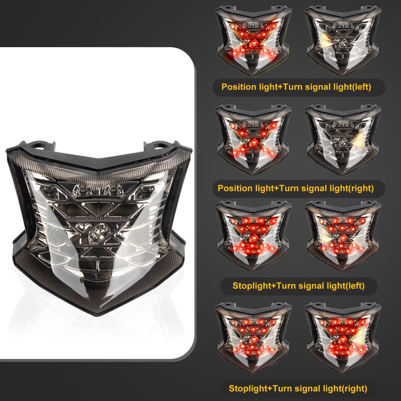 - VERSATILE APPLICATION - The tail light integrated led is compatible with z900 z900se 2017-2024,z650 ninja 650 ABS 650R EX650 ER6F 2017-2019,ZH2 2020-2024. Whether you're upgrading your existing ninja led lights or replacing damaged ones, this versatile product delivers optimal functionality and style. Elevate your driving experience with the integrated tail light's exceptional performance and striking appearance