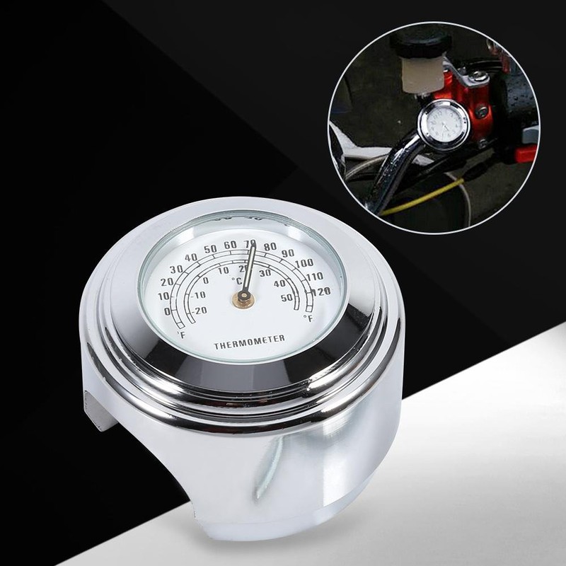 - Features: the motorcycle bicycle handlebar mount temperature thermometer meter is easy to record the temperature and read the temperature number to make your life and travel easier. You only need to mount the thermometer on the straight section of the motorcycle handlebar by tightening the screw with a stainless steel screw.