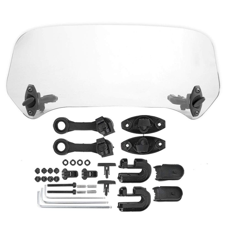 - Easy to install --- The motorcycle windshield deflector is equipped with a set of installation hardware for easy installation. Moreover, the windshield is also equipped with extension arms and double hinges to provide a greater range of movement and adjustment, which is convenient and practical.--for motorcycle windscreenmotorcycle screen extender motorcycle windscreenmra windshield extendwindshield bikemotorcycle windshieldwind deflectorswindschild spoilerspoileradventure bike windscreen exte