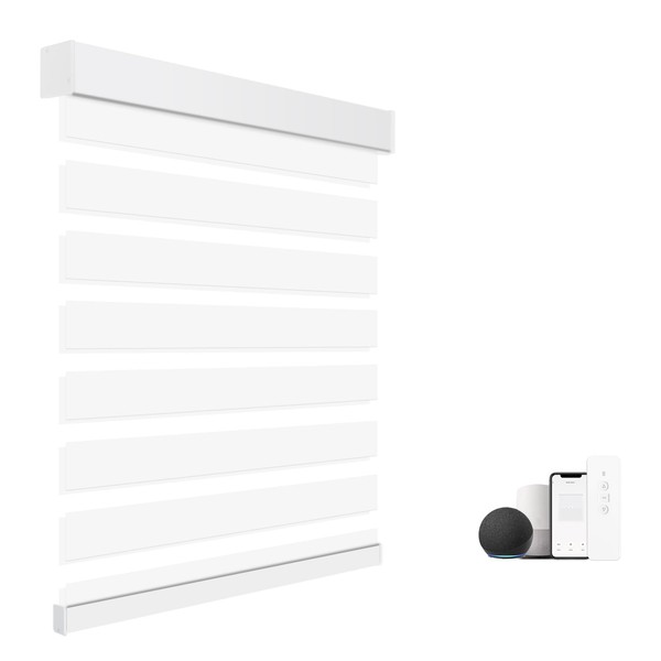 Motorized Blinds with Remote, 60% Blackout Smart Zebra Shades, Built-in Rechargeable Electric Automatic Blinds for Window Compatible with Alexa Google (White, 32" W x 72" H)