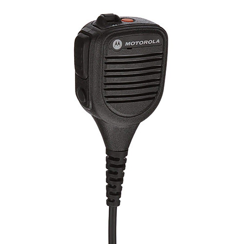Motorola PMMN4065A is a large remote speaker microphone is easy to operate even while wearing gloves and features IMPRES audio which optimizes your audio when operating in noisy environments. The Wind porting feature is specifically designed for windy outdoor environments and dramatically reduces the noise caused by howling winds and harsh weather. This microphone also has a volume switch, programmable orange emergency button and side programmable button.
