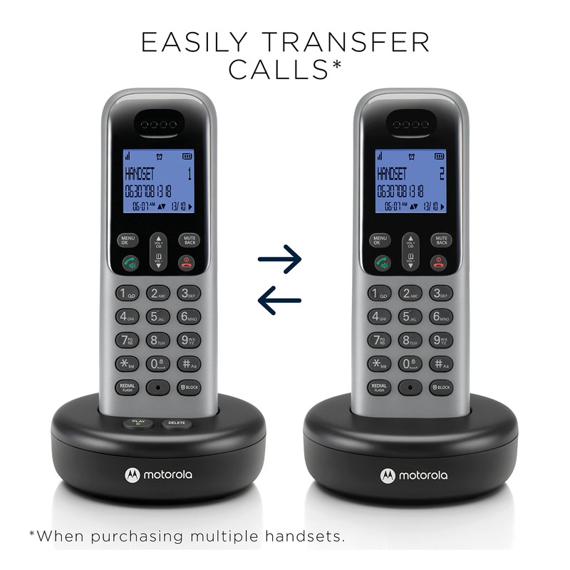 Motorola Voice Cordless Phone System w/ 3 Digital Handsets + Answering Machine, Remote Access, Call Block - Dark Grey (T613)