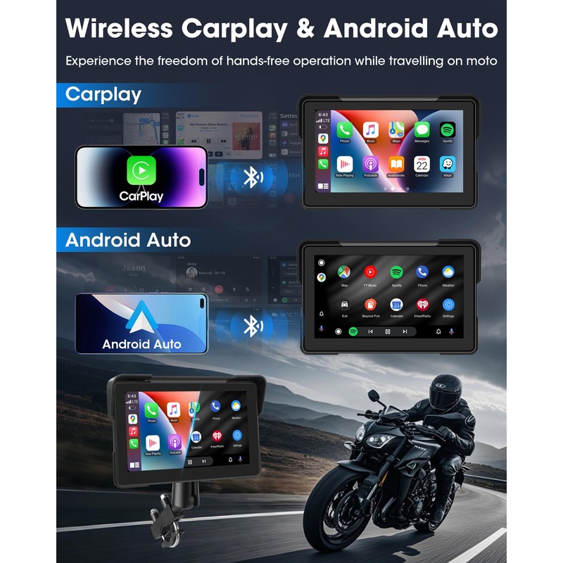 - 🏍️【Kabellos CarPlay und Android Auto für Motorrad】Das motorrad carplay display wurde für Fahrer entwickelt, die Smartness und Langlebigkeit verlangen.Die motorrad navigationsgeräte verbindet sich nahtlos mit Ihrem Smartphone über Bluetooth mit kabelloses CarPlay motorrad & Android Auto motorrad, um auf Ihre Lieblings-Apps zuzugreifen, Anrufe zu tätigen, Musik abzuspielen und Ihre Route zu navigieren. Mit der motorrad carplay können Sie sich von der lästigen ständigen Bedienung Ihres Telefons während der Fahrt verabschieden und eine sichere Fahrt gewährleisten.