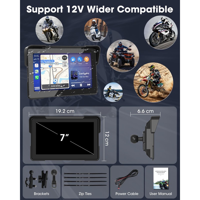 - 🏍️【Carplay Display 7 Zoll IPS HD & Offline-Wiedergabe】Vivid 7 Zoll Touch CarPlay motorrad ist reaktionsschnell, 1024*600 Bildschirm bietet hervorragende Helligkeit, lebendigere Farben und klarere Bildqualität als Standard 5 Zoll motorrad display, Sie können SD-Karte verwenden, um Video oder Musik offline zu spielen, verbessern Sie Ihr Seherlebnis und genießen Sie einen größeren visuellen Effekt, wenn Sie mit einem großen HD-Bildschirm reisen. (SD-Karte nicht enthalten)