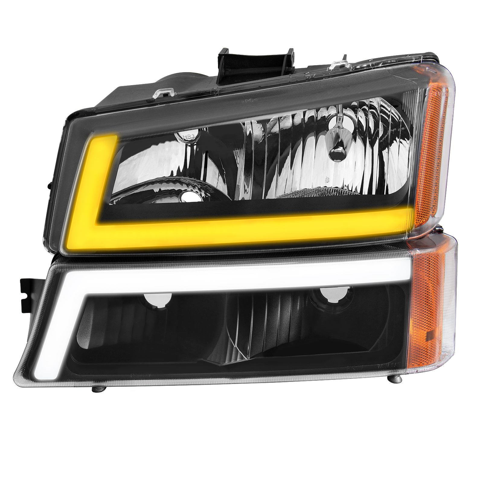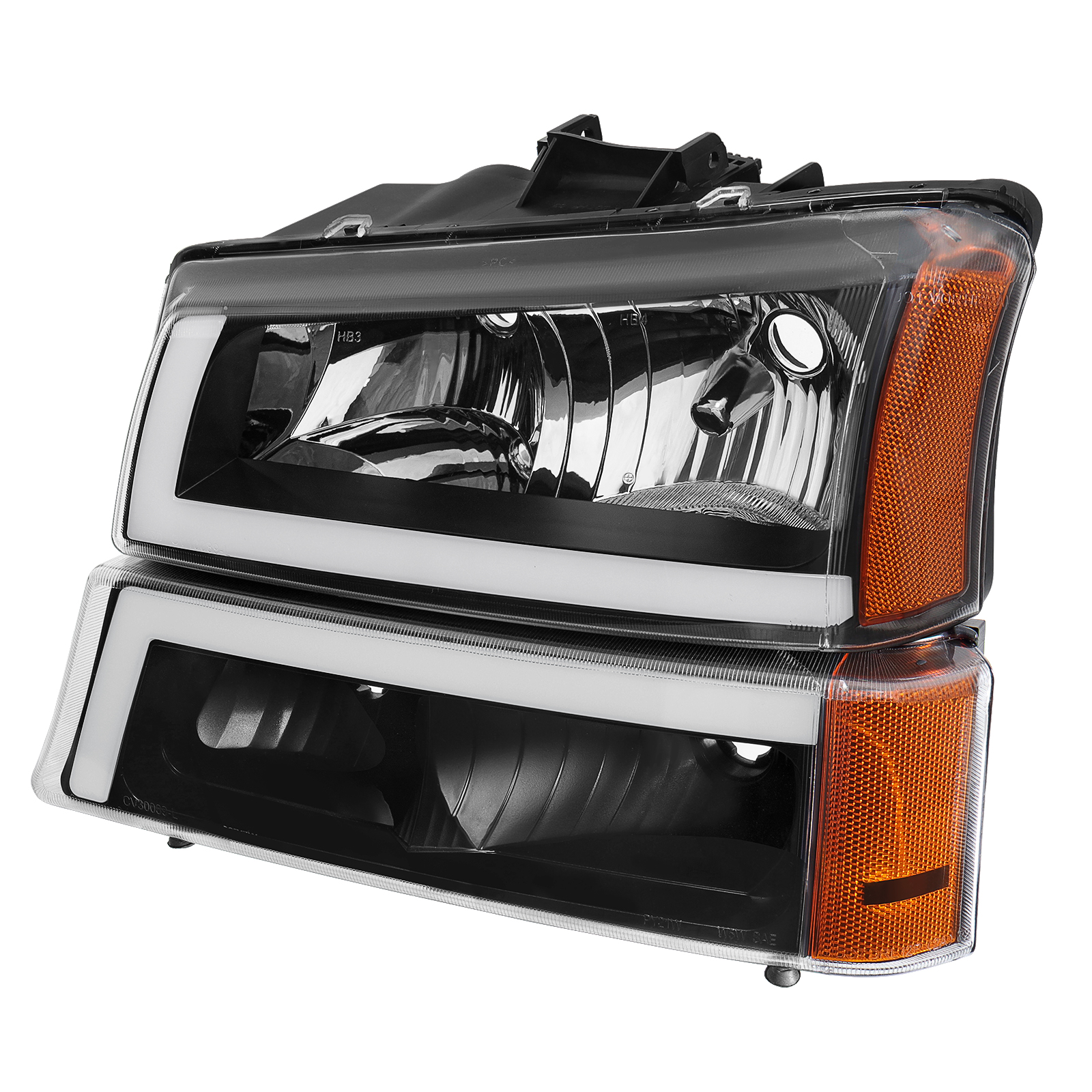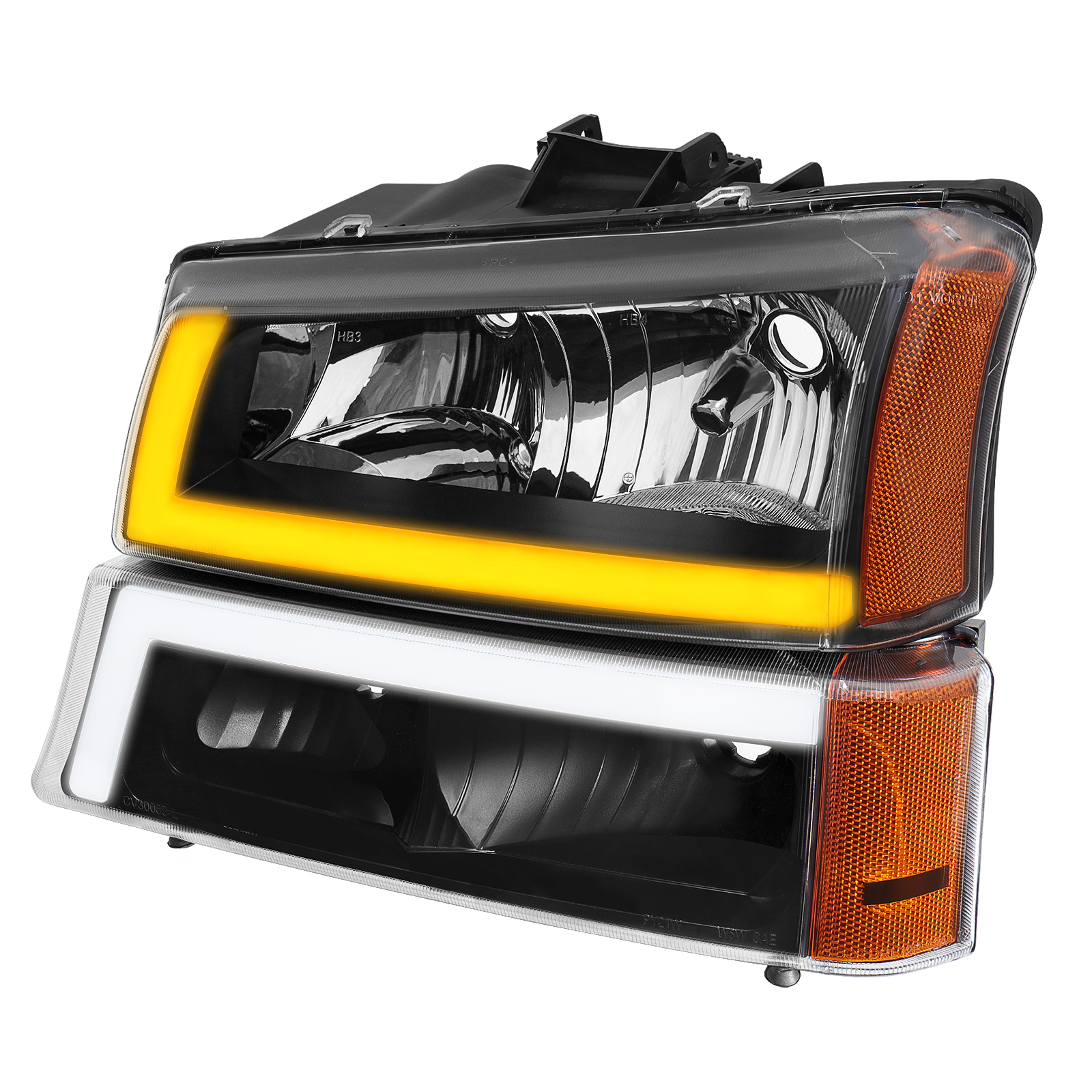 MOTORSPORTPLUS Black Headlights LED DRL Sequential Signals For 03-07 Chevy Silverado Avalanche