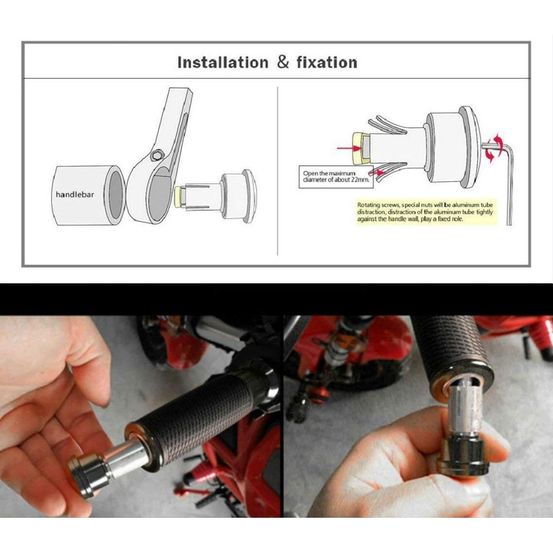 - Sold in pairs.Two sizes of expansion collars for inside the bar mounting.Clamps on for 7/8" handle bar only.No manual inclusive,may require professional installation.