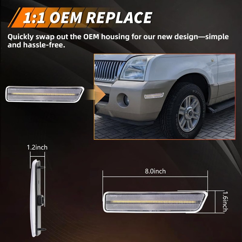 - [Precise Compatibility] MOTRUM Front Turn Signal Marker Light is perfectly compatible with 2002 2003 2004 2005 Mercury Mountaineer, making it an easy and effective upgrade for your ride. Its OEM Part #5L9Z 15A201 DA ensures that it is a flawless fit, making your journey safer and brighter.