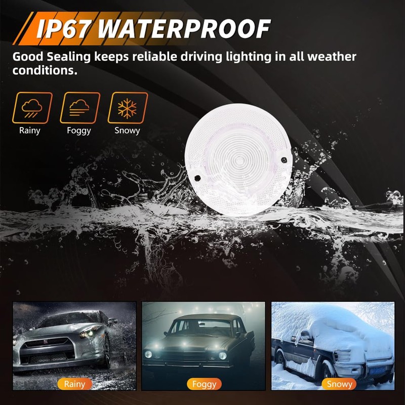 - [IP67 Waterproof & Stylish Design] The IP67 waterproof lens come with a reliable seal, providing good lighting in all weather conditions. Our precise and fashionable design increases the visibility and adds an element of style to your vehicle appearance, enhancing your overall driving experience.