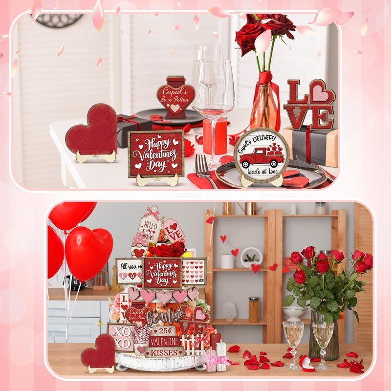- Suitable Size: our valentines tray decors are designed in different sizes, please refer to the picture to get detailed information about each product size; They are freestanding and easy to decor