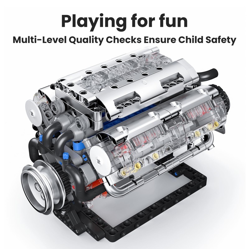 - Realistic motor model: a detailed kit with 552 parts to replicate a motor. Transparent cylinder heads allow insights into precise piston mechanics, turbocharger functions and authentic motion sequences.