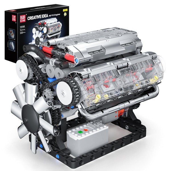 Mould King 10088 Technik Engine Building Blocks Model, Engine Model Kit Clamping Blocks for Adults, MOC Petrol Engine as Toy/Gift/Collectibles (552 Pieces)