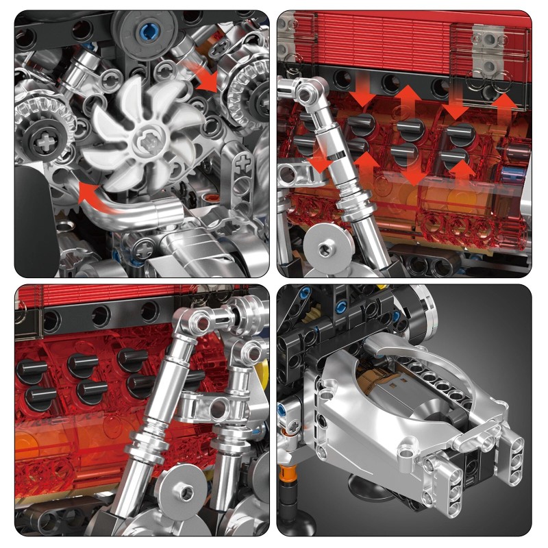 Mould King 10163 W16 Engine Red Motor Model Building Block Toy Collectibles