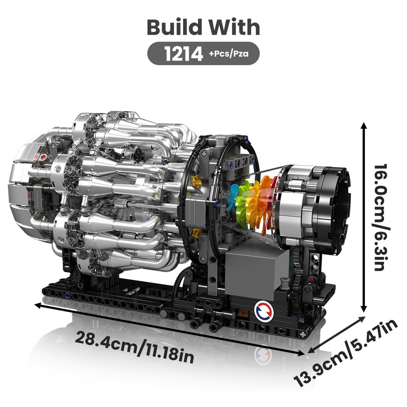 - Detailed Aircraft Engine Scale Model: Build a highly realistic replica of a turbojet engine with over 1210 premium building pieces. Features authentic mechanical details based on actual aircraft engine designs.