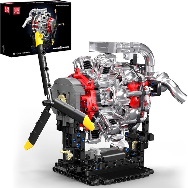 Mould King Aircraft Engine Building Blocks Set - Mini Radial Aviation Engine Model Kit with Motor, 7-Cylinder Engine Engineering Building Kits, DIY STEM Project for Adults & Kids Aged 14+ (1147 PCS)