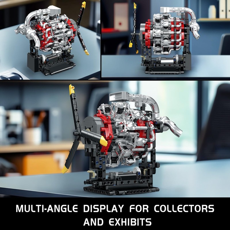 - 【Functional Aircraft Engine Model】Build a dual-row 7-cylinder radial aircraft engine that runs with authentic mechanical design – Features 14 interconnected pistons, dual-row cylinder banks, and a rotating crankshaft.