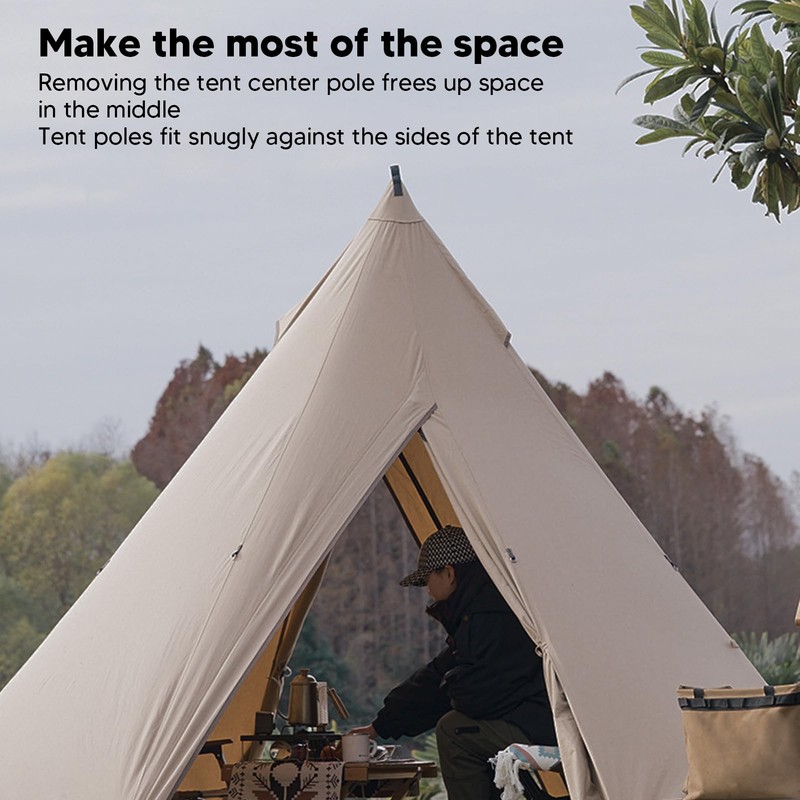 - Space Saving Design: These tripods stand are designed to remove the center pole of the tent, which can more space in the middle of the tent. Tent tripod are close to the side of the tent, making the interior more spacious and comfortable.