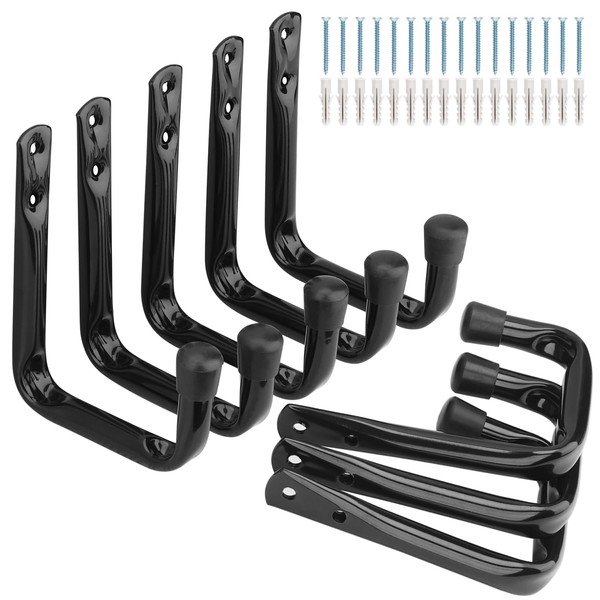 - Package includes: garage hooks set contains 8 sturdy hooks, each measuring 4.5 " x 3.5 " (L x W), along with 16 screws and 16 anchors for easy installation.
