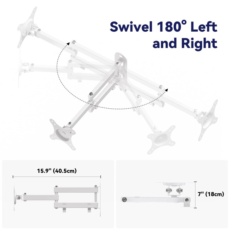 - Scalable Arm: This mounting bracket for echo Show 15 can be extended forward and retracted backward easily and smoothly. The adjustable length of the echo show 15 mounting bracket from the wall ranges from 3.9" (10 cm) to 17.6" (45 cm).