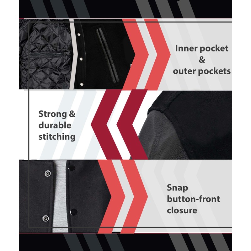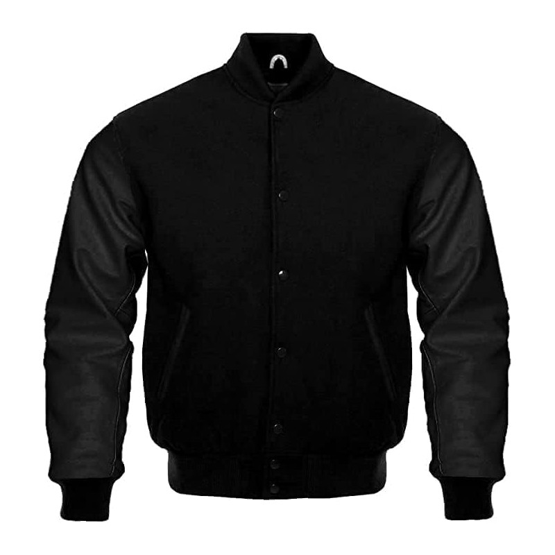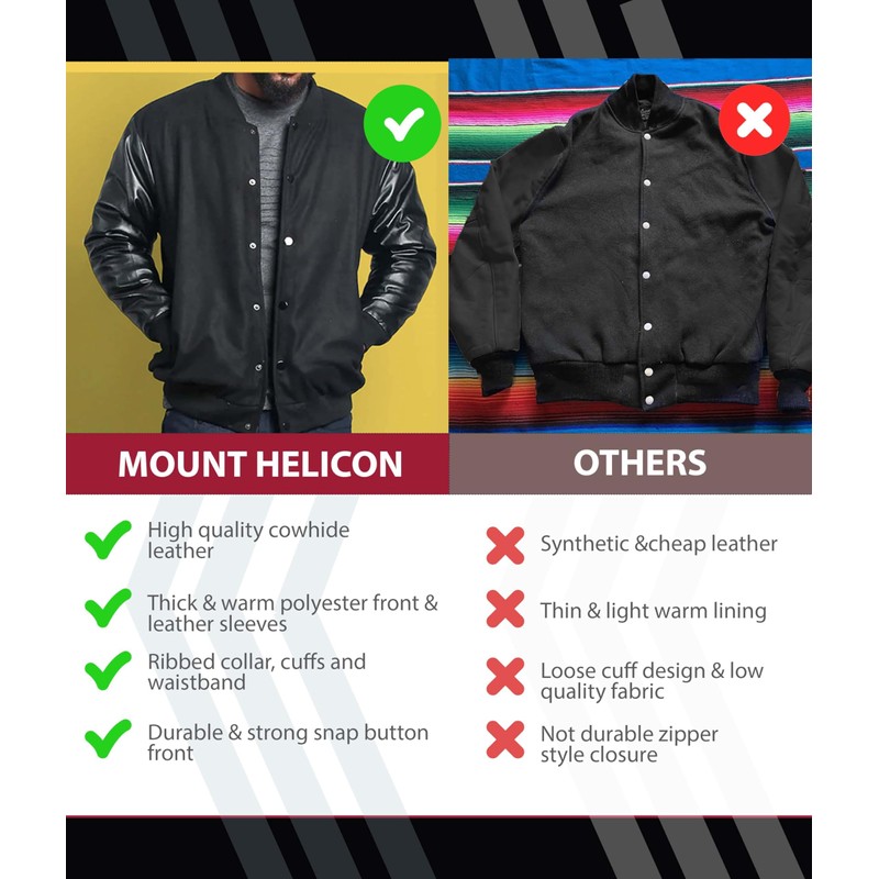 Mount Helicon Two-Tone Leather Baseball Varsity Jacket for Men - Premium Quality and Unique Design (US, Alpha, Medium, Regular, Regular, Solid Black)