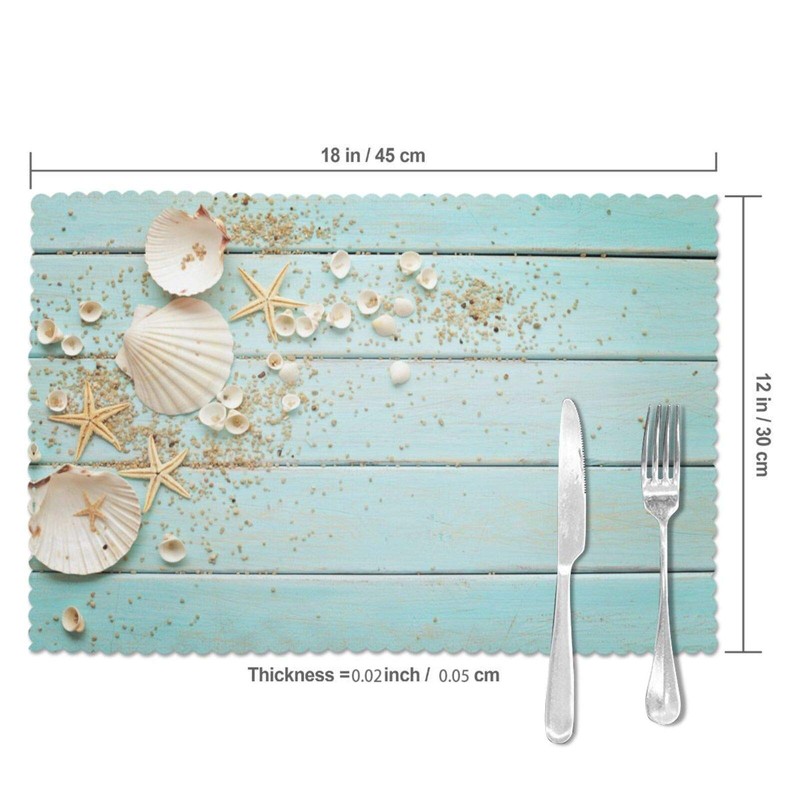 Mount Hour Sea Shell Beach Summer Starfish Board Placemats Set of 6 Heat-Resistant Washable Table Non-Slip Place Mat for Dining Table 12 X 18 Inches
