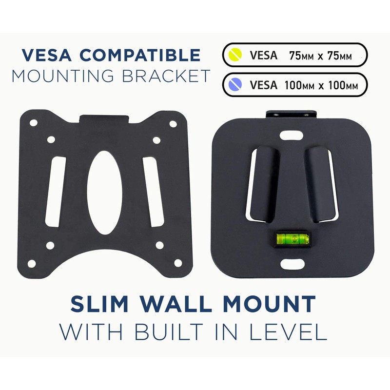 Mount-It! Mount-It! MI-203 Low Profile Fixed TV Wall Mount | Fits 13-32 Inch Screens | VESA 75x75 & 100x100 | Heavy-Duty Steel with 60 Lbs Capacity | Built-in Bubble Level | Ideal for RV, Home, and Office