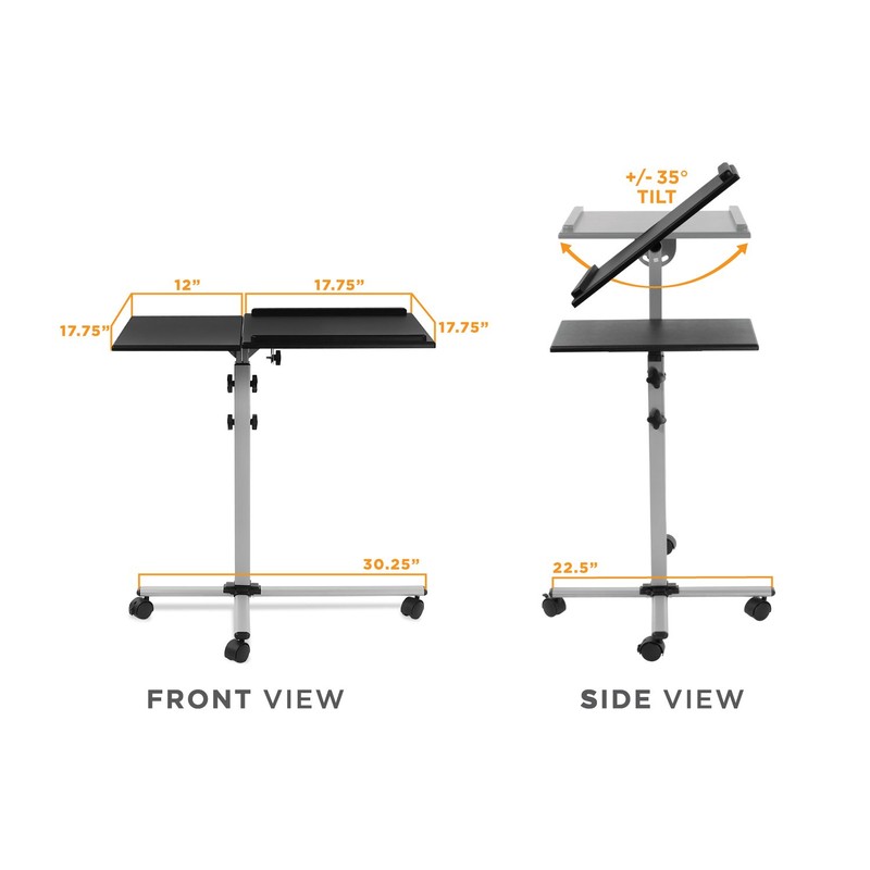 Mount-It! Rolling Laptop Tray and Projector Cart, Height Adjustable Presentation Cart with Wheels | Overbed Table with Tilting Tabletop (MI-7945)