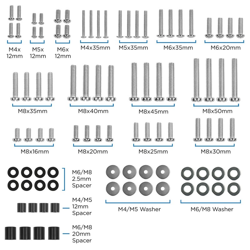 - WALL MOUNT SCREW SET INCLUDES 92 pieces of M4, M5, M6, M8 TV Screws, Washers & Spacers