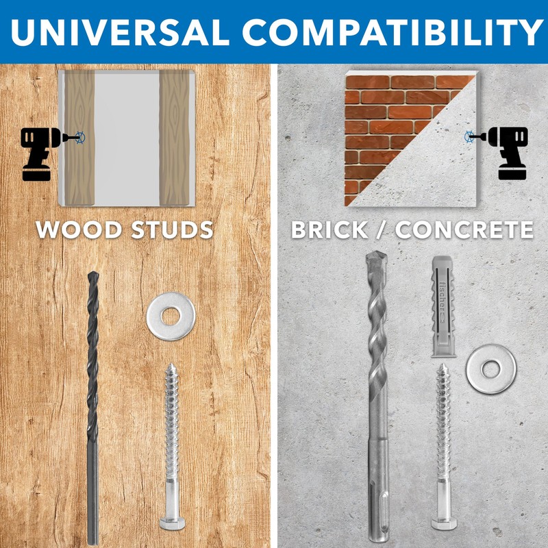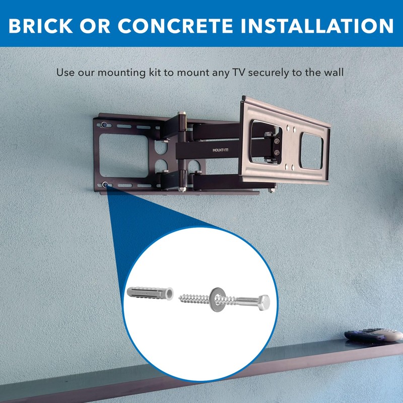 - CONCRETE WALL INSTALLATION: No need to look for extra hardware when installing your TV mount on a concrete or brick wall. This kit includes a concrete drill bit as well as four Fischer concrete anchors