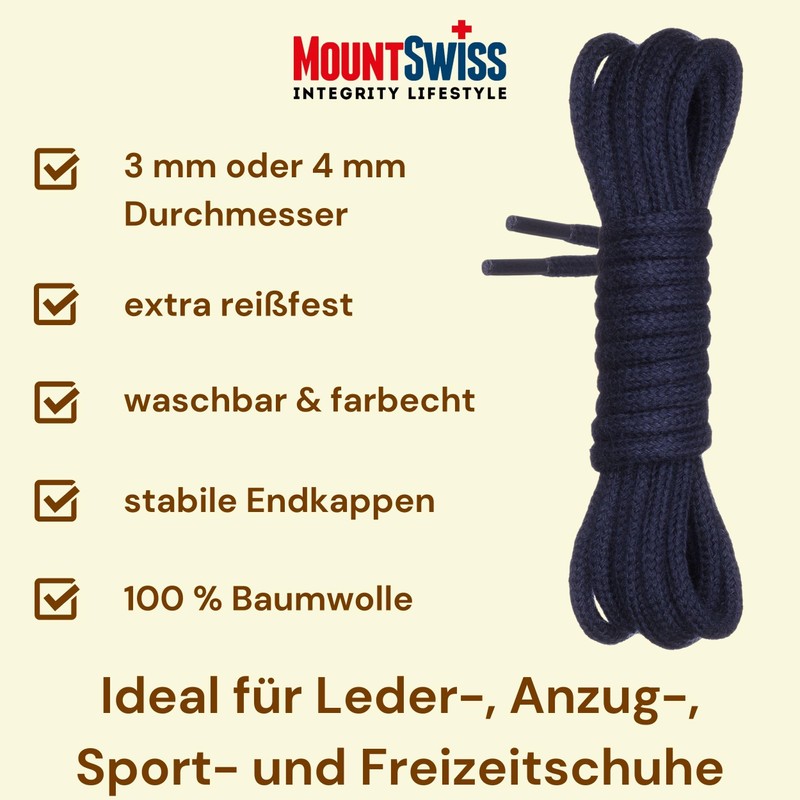 - ✅This Mount Swiss premium shoelace is made of cotton with a diameter of 3-4 mm, and is therefore very tear-resistant for a cotton shoelace.
