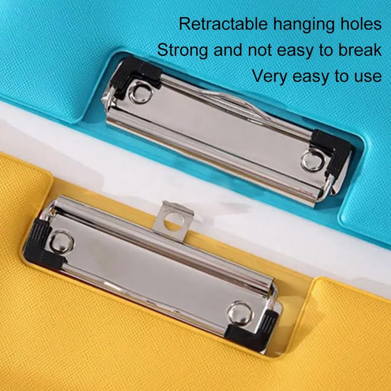 - Telescopic hanging hole: each clipboard clip has a hanging hole that can be stretched so you can easily hang it on a hook or on a wall if necessary. It can also be attached a string to hang the clipboards, very convenient to take with you.