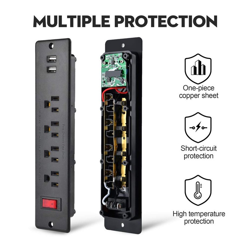 Mountable Power Strip Recessed Power Strip with USB 4 Outlet 2 USB Multiple Protection Built in Conference Desk Counter Workbench for PC Home Electric Appliance ETL Listed(Black)